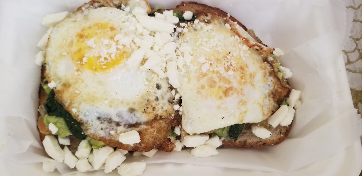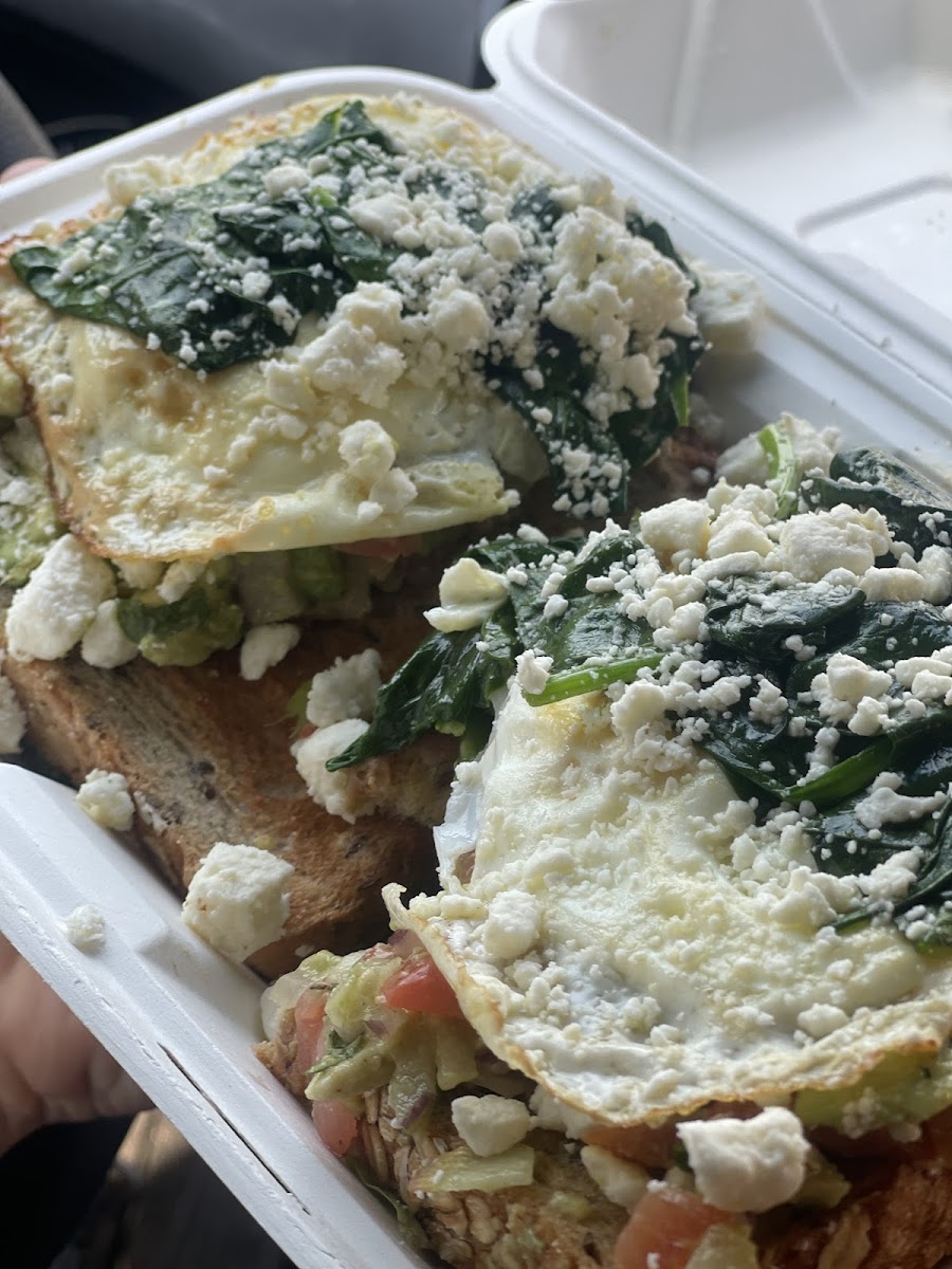 Another memorable option on the menu is the Avocado Toast Choice of Seven Grain Bread w Sauteed Spinach. The hearty seven-grain bread gives the toast a rich texture, while the sautéed spinach adds depth and freshness. Together, the ingredients highlight the cafe’s focus on wholesome, organic ingredients without overcomplicating the dish.