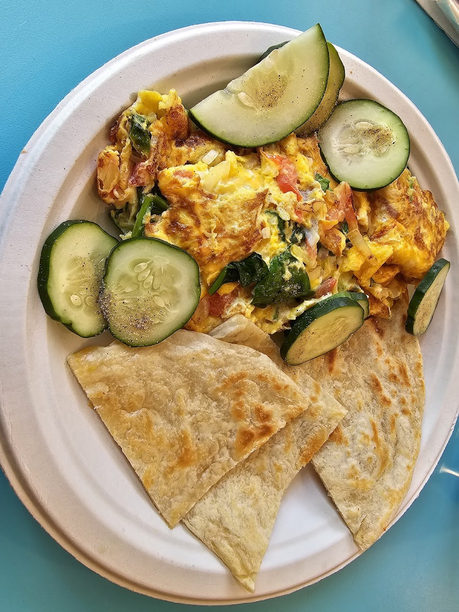 For something a little different, the Omlette Indian Scrambled Eggs bring a unique twist to the breakfast lineup. The flavors are vibrant and comforting at the same time, offering a warm and savory experience that stands out from more traditional cafe breakfasts. You’ll also notice the Omelet Indian Scrambled Eggs listed on the menu, another variation that continues the cafe’s theme of blending familiar breakfast favorites with distinctive seasoning.